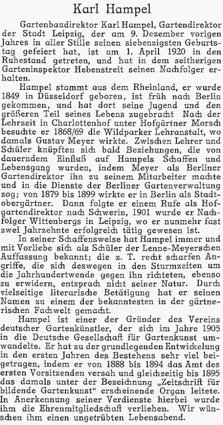 - von 1901 bis 1920 Gartendirektor der Stadt Leipzig